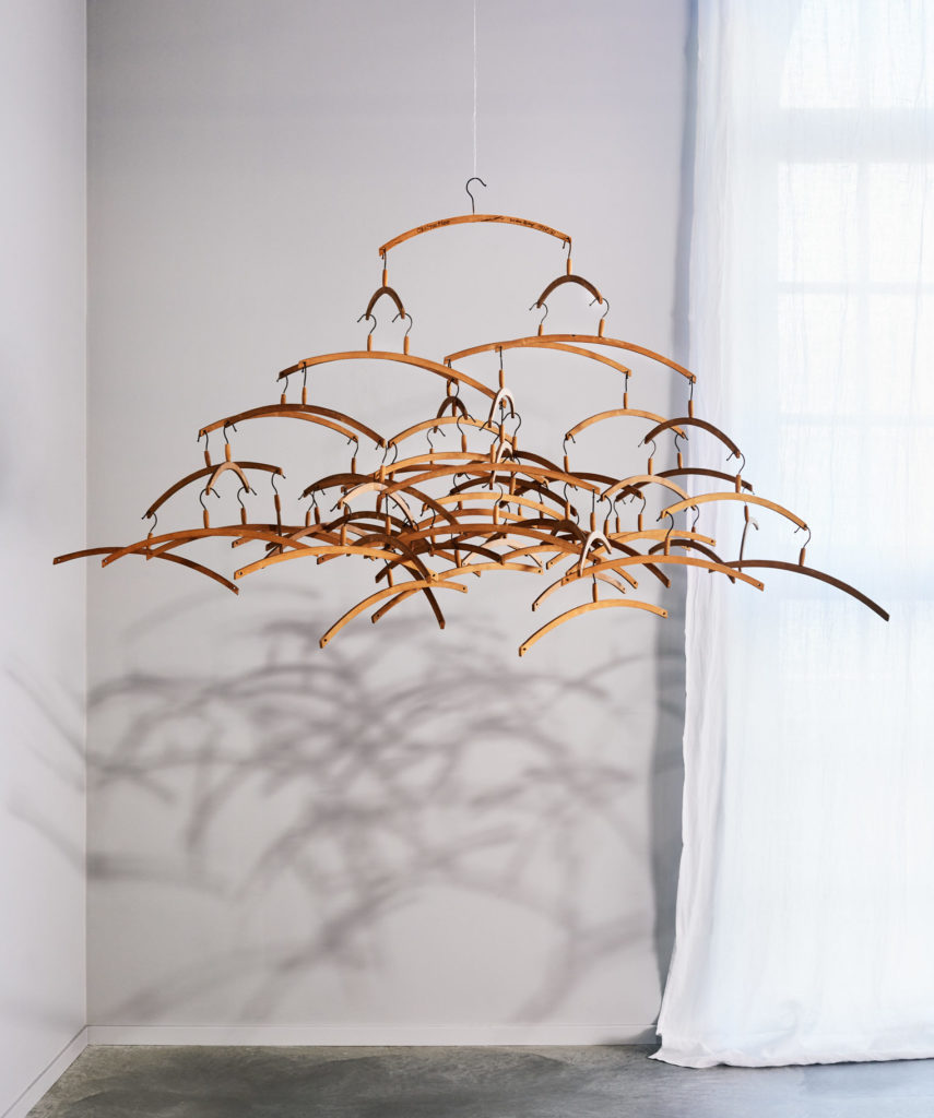 Lot 442 Man Ray (USA 1890‑1976). ”Obstruction”. Inscribed, signed and dated on the top hanger: Obstruction Man Ray 1920/61, stamped numbering 8/15. Multiple consisting of 63 wooden hangers, Height ca. 94 cm.